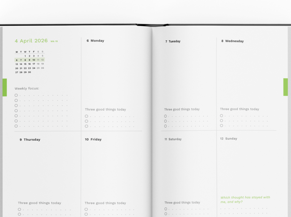 The Signature Edition of Almost Daily is designed as a sturdy companion: A 24mm hardcover planner in DIN A5 format printed in full color on 296 pages of premium uncoated paper made to last through 2026 and beyond.Its mindful structure blends reflection, focus, and planning, helping you realign each day with intention and calm clarity.Perfect as a gift or for anyone seeking a meaningful ritual of daily presence, whether they rise early or unwind late.