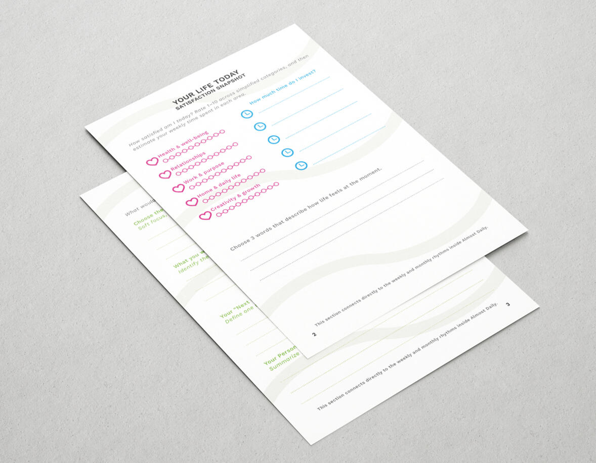 Almost daily is life design system that helps you slow down, reflect, and build the everyday skills that make life feel more like you again – gently, at your own pace. It works because …